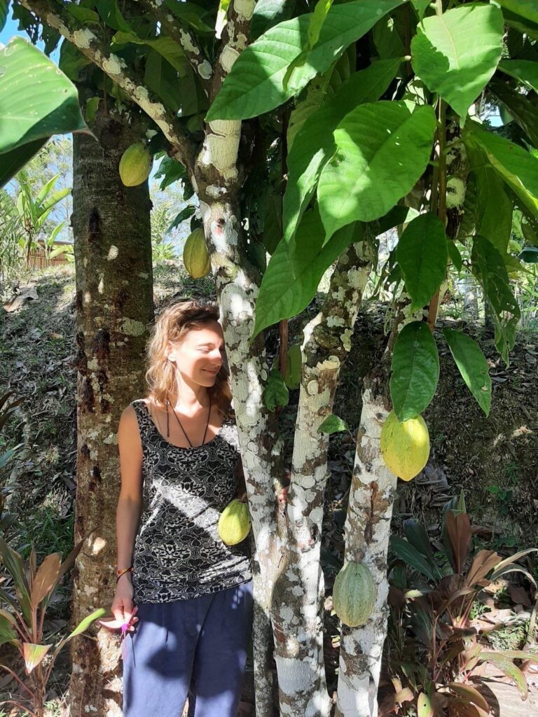 Rohen zeremoniellen Kakao tranken bereits die Maya. Er galt als Trank der Göttinnen und Götter. Die Wirkstoffe des auf diese Weise zubereiteten Kakaos rufen Glücksgefühle hervor – oder mit anderen Worten: Der Kakao zeigt uns die Tür zu unserem Herzen. Die Kakaozeremonie schafft die Bedingungen, um durch diese Tür zu gehen; mit dem eigenen Herzen in Kontakt zu kommen und als Gruppe Verbundenheit zu erleben. Die Kakaopflanze ist eine Botschafterin der Erde; ihr zuzuhören kann uns in tiefen Kontakt mit dem größeren Ganzen, der eigenen Intuition und der inneren Weisheit bringen.